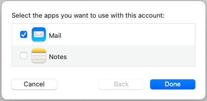 - Un-check "Notes" and click the "Done" button.